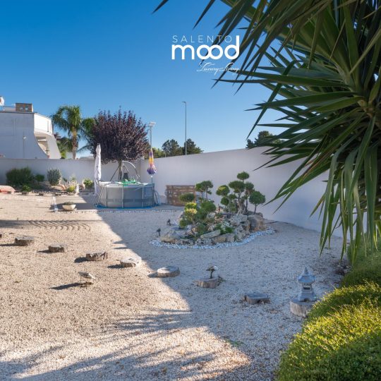 Salento Mood - Luxury Living è lieto di proporre in vendita esclusiva villa singola con giardino zen, nella città di Matino. La villa, con una metratura interna di 175mq, è distribuita su un unico livello ed è così disposta: