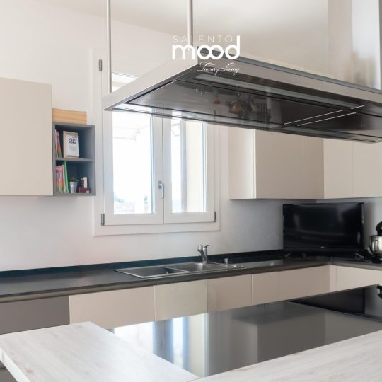 - Cucina ad isola con piastra ad induzione (con predisposizione per cucina a gas);