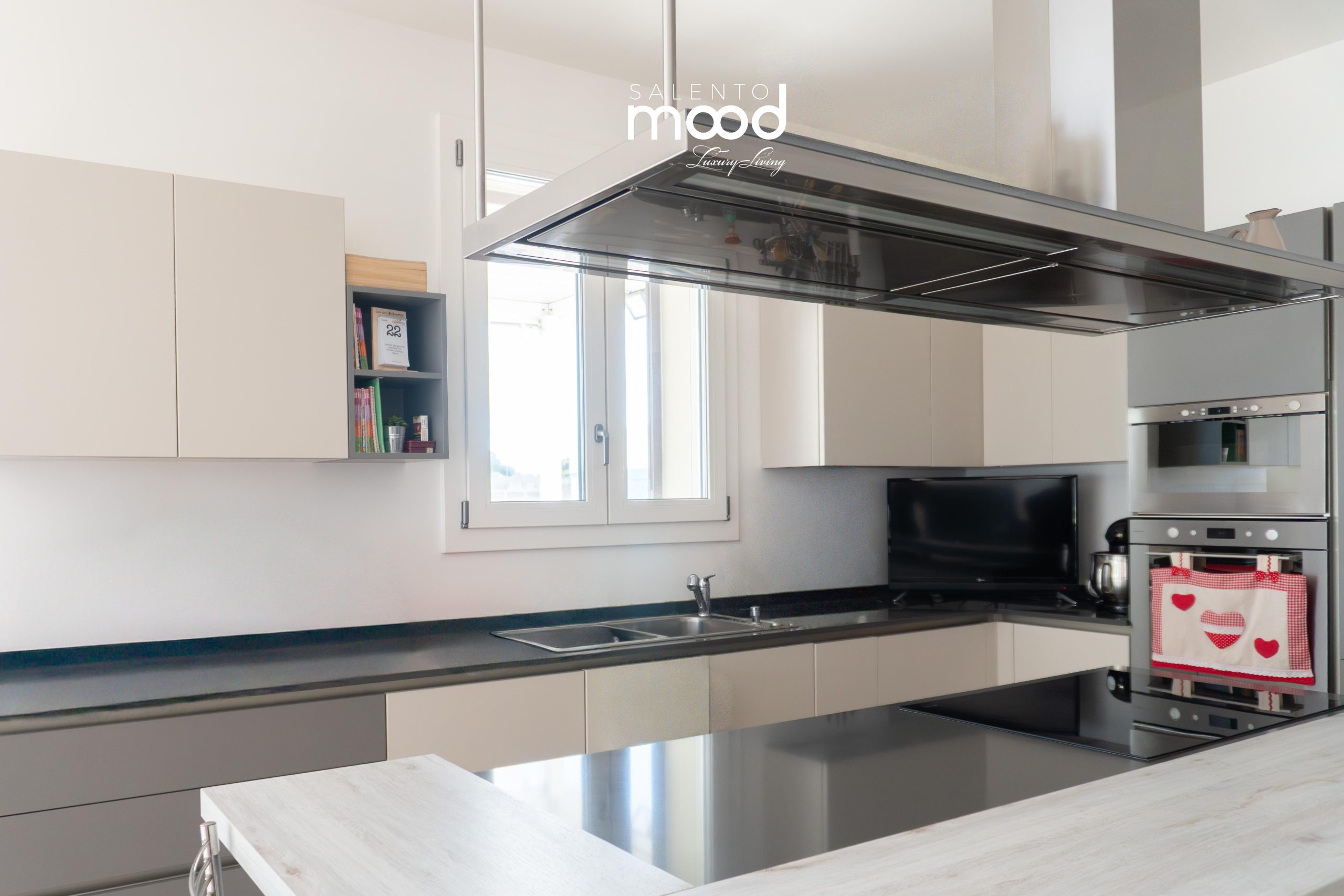 - Cucina ad isola con piastra ad induzione (con predisposizione per cucina a gas);