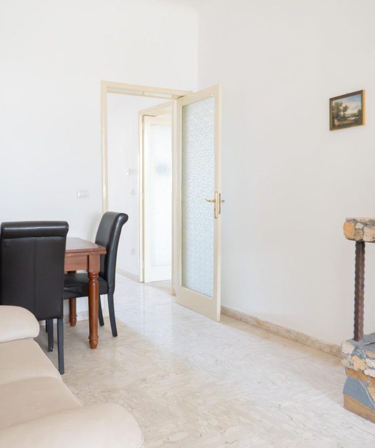 Una porta a vetri oscurati divide la zona giorno dalla zona notte, nella quale troviamo una spaziosa camera matrimoniale e due bagni, rifiniti con materiali di pregio.